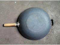 主要成分是鐵,還含有少量的硫、磷、錳、硅、碳等。鐵鍋有生鐵鍋和熟鐵鍋之分。生鐵鍋是選用灰口鐵熔化用模型澆鑄制成的。熟鐵鍋是用黑鐵皮鍛壓或手工捶打制成,具有鍋坯薄,傳熱快的性能。